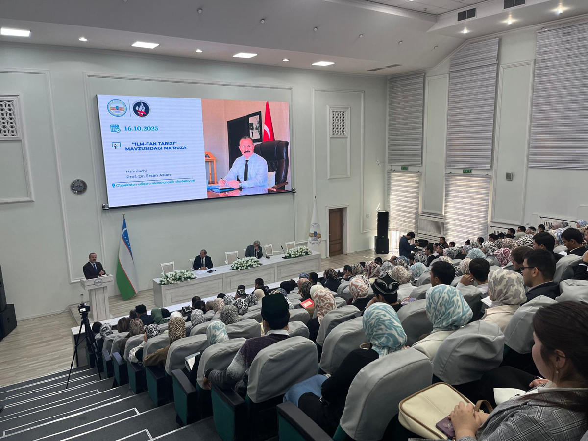After signing protocol, Prof. Dr. Ersan Aslan delivered a seminar on the history of science in Islam at International Islamic Academy. He discussed the contributions of Islamic civilization to scientific developments and modern technology. He stated that he has shared the contributions of Islamic civilization to science with hundreds of young people in Türkiye and around the world since 2019, highlighting Prof. Dr. Fuat Sezgin’s life and works. He expressed his pleasure in delivering this seminar in Uzbekistan, the “Cradle of Science”, where scholars such as Ibn Sina, Biruni, and Al-Khwarizmi were educated. The seminar concluded with Q-A session.